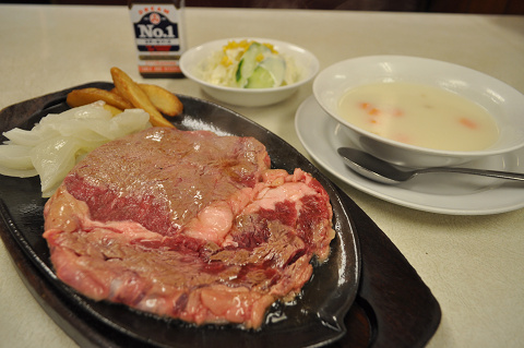 | 料金 | ジョウトウ(上等)ステーキ230g(スープ・ライス付き)1700円 | |