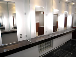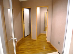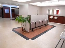 ブティックさながらのフィッティングルームまで完備されちゃっていますから、軽井沢のアウトレット帰りに買った服を着ちゃう方も3人くらいはいそうです。トイレ内に待ち合わせコーナーを設置して、ゆとりあるスペースに仕上がっています。 全体的に採用した木目調のデザインが女性には効果てきめん。床面の清潔さを維持するためのゴムタイルの採用も、無機質な公衆トイレのイメージを変えてしまいました。 *
