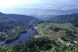 津南キャンプ場では「ダッチオーブンでローストチキン」を行っている。ダッチオーブン料理のなかでも人気の高いのがローストチキン。初心者は必見。講師料、保険料、材料費込みでひとり2772円(一般)。津南キャンプ場は標高903mの山伏山をロケーションにするブナやミズナラなど広葉樹に囲まれるキャンプ場(写真下)。