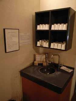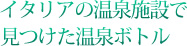 1877年開業のテレーゼ・テルメ温泉の売店で見つけた「飲む温泉」。娯楽というよりは治療といった意識が強い