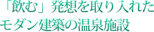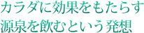 ヨーロッパの温泉施設に行くと、温泉を「保養施設」ととらえて療養に利用しているのがわかる。日本では娯楽や観光レジャーの延長で温泉をとらえがちだが、もっと「飲む温泉」が増えていい。 |