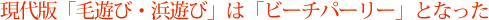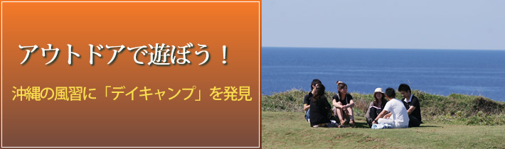 さながらデイキャンプならず「ナイトキャンプ」ともいえる毛遊びは、残念ながら衰微していき、現在では40~50代の“うちなーんちゅ(沖縄の方言で沖縄県民の意味)”しか体験したことがないようだが、新しい形として沖縄のアウトドアの文化として根付いている。 現代の毛遊びとなるビーチパーリーは、沖縄の米軍居住地などに住むアメリカ人が発祥のアメリカンスタイルである。バーベキュー主体のデイキャンプそのものだが、おそらく日本でもっとも盛んに「デイキャンプ」を行っているのは沖縄県だろう。紺碧の海と真っ白な砂浜をもつロケーション抜群の沖縄だけに、必然的にビーチがメインフィールドとなる。 ちなみに毛遊びの「毛」の由来となる「野原」「原っぱ」だが、たとえば沖縄きっての恩納村にある観光名所「万座毛」などは、古くから毛遊びの舞台とされ人気のスポットだった。 ![]() ちなみに沖縄県のキャンプ場のほとんどはビーチ。 |