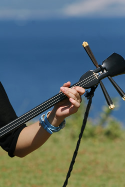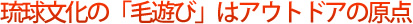さて、琉球に古くから伝わるアウトドアというのは「毛遊び(もうあしび)」のこと。野原や浜辺をフィールドに青年男女がお酒や食料を持ち寄り、三線をひいたり踊ったりする。 |