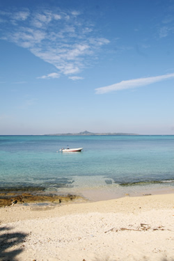 白砂と紺碧の海。どこまでも続く青い空の下でビーチパーリーを体験。写真は美ら海水族館近くの本部町の浜辺