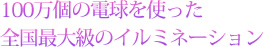 クリスマスの風物詩ともいえるツリーの点火式。光の装飾に彩られたクリスマスツリーは遠くからでもつい引き込まれそうになります。冬になると、規模の大きな光のイルミネーションイベントが全国で開催されます。いくつか取り上げてみましょう。 |