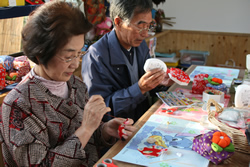 このほかにも「マッチ絵の家」、素焼きの土鈴に絵付けをする「鈴の家」、「おしばなの家」、「ガラスの家」、「ぬり絵の家」、「ちりめん細工の家」、「ドライフラワーの家」など、さまざまな体験ができる。 なんといってもおもしろいのは「地元」と「日本の昔」が意識されていることだ。地元産のコンニャク玉を使用したり、地元に伝わってきた竹細工など、昔からこの集落に伝わってきた伝統が、新しいかたちで遠来のお客に披露されている。また、一昔前ののどかな遊びや工芸がこの集落に凝縮されており、年配の方にとっては懐かしい気持ちになる。 |