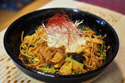 季節によって変わる旬の自家製の無農薬野菜に、コシのあるこだわりの特製麺を使用。温泉卵のトッピングで食欲は倍増。有名ホテルの割烹で修業を積んだ気鋭の若手イケメン店主入魂の作。 所在地:静岡県熱海市泉99-1 定休日:火曜日 営業時間:9:00~20:00 www.yamagoya.org 富士宮焼きそばに代表されるB級グルメ。コンテストが開催されるほど、町おこしの火付け役としてご当地グルメに注目が集まっているが、ここ湯河原も力を入れている商品がある。 その名も、「たんたんたぬきの坦々やきそば」。 たぬきが見つけた温泉という伝説にちなみ、商工会が旗振り役となってメニューを考案。昨年の1月末に試食会が開催され、2月から本格的に湯河原名物として売り出されるようになった。まだ、できたてほやほやのご当地メニューなのだ。 ひとまず2軒をまわってみた。この味覚は新体験! コシのある麺は歯ごたえがしっかりしており、それに負けないピリ辛のソースが共通点となっている。 食べられるお店は町内の50店舗。中華の専門店から、喫茶店、居酒屋、スナックと、それぞれの店の個性がウリでもある。現段階ではまだ味のスタンダードとなる店はない。 特徴は練りゴマや豆板醤をベースにしたピリ辛の坦々ソース。海の幸や地場の新鮮野菜などを使い、各店舗がオリジナルで味を競い合い、工夫を凝らしている。 無料で配布されているガイドマップを片手に、自分好みの坦々やきそばを探すのも、これは一大イベントになる。 |