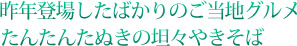 この道50年の老舗店の重鎮が作る、豚肉、キャベツ、紅しょうがを使った王道のやきそば。しっかりした食感の特製ちぢれ麺を使用。桜エビと坦々ソースが新体験の味を生む。 所在地:神奈川県足柄下郡湯河原町土肥2-7-20 定休日:無休 営業時間:9:00~19:00 ![]()