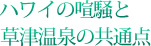 草津温泉旅館協同組合 所在地/群馬県吾妻郡草津町草津39 営業時間/9:00~16:00(年中無休) TEL/0279-88-3722 オンライン予約/www.yumomi.net サブプライムローン問題が引き起こした不況の嵐は、すくなくともホノルルでは感じられない。ワイキキはアメリカ人、東洋人を問わず、にぎやかで、みやげもの屋にはひっきりなしに人が入ってくる。同じアメリカのニューヨークやロサンゼルスでも、これほどにぎやかな通りは僕は知らない。 バーのカウンターでビールを飲んでいると、隣のアメリカ人が声をかけてきた。しばらくするとウェイターを交えてのご当地談義になり、すっかり盛り上がってしまった。そのときなぜだろう、草津のことを急に思い出したのだ。 ワイキキにも草津にも、人を楽しませたりわくわくさせてくれる「何か」がある。 旅をしていて本当に楽しいのは、じつは景色を見たり未知の体験をしたりすることよりも、こうして見知らぬ同士が話をしたり、お互いの気持ちがわかったりすることのほうが大きいのではないだろうか。 たとえば、宿のご主人や店のオーナーと仲良くなる。参加したイベントで、そのガイドさんと親しくなる。バーの止まり木で、初めて会う人とブロークンイングリッシュでうちとける。 ワイキキは、いろんな国から人が集まっていて、受け入れる側もそれをわかっている。だから、コミュニケーションが町のいたるところで体験できる“仕掛け”や“参加者の心の準備”がちゃんとできているのだ。 草津の温泉街を歩くと、まんじゅう屋の店先で必ず呼び止められ、お茶とまんじゅうが無料で振る舞われる。もちろんおみやげを買ってもらうためのプロモーションなのだが、これは本当に買ってもらうためだけが目的なのか――。 僕にはそうは思えないのだ。もらうほうはもちろんうれしいが、ありがとうからはじまるお店の人との会話が、まんじゅうを配る側の人たちにも喜びを与えているのではないだろうか。 じつはこの気持ちのやりとりが、旅の楽しさを根底から支えてくれる、いちばん大事なことなのではないか。 旅の楽しさは、街の評価にもつながる。なぜか楽しい。そこにいるとうれしくなる。このわくわく感が増幅すれば、そこにやってくる観光客同士が勝手にコミュニケーションをとるようになるはずだ。まるでワイキキみたいに。