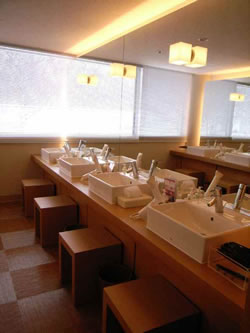 水上高原ホテル200の男性用パウダールーム。ドライヤー、コームを完備。女性にも配慮し、大浴場とパウダールームは男性用以上にスペースが広くなっている。