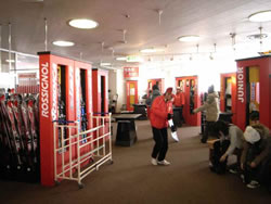 パインリッジリゾート神立のスキーレンタル。「クレブ」の運営するこのレンタルはディスプレーのイメージも統一されており、スキーショップで購入しているような気分にさせてくれる。