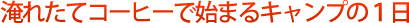 キャンプの1日は、朝のコーヒーブレイクで始まる。高原や湖畔などフィールドの清々しい空気の中で味わう1杯は格別だ。今度のキャンプはこだわりのコーヒー豆を持って、大人のひとときを楽しんでみてはいかがだろう。 |