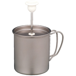 チタンミルクフォーマー(3600円)があれば淹れたてコーヒーにフォームドミルクを添えることもできる。スノーピーク製。
