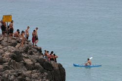 あるのは断崖絶壁、滝、海の洞窟、上部の森、そしてときどき無人のビーチ……。 ナ・パリ・コーストの20㎞をシーカヤックで渡れとガイドが言う。 「カヤックなんて、やったことないよ」とぼく。 「大丈夫、事前にパドリングの練習をするからできる。勇気と体力があれば、最高の気分になれる」と、お気楽にガイド。結局、その言葉に誘われて、カメラマンと一緒に2人乗りのシーカヤックでナ・パリ・コーストに漕ぎ出したのだった。 |