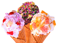 ![]() 京葉道路・幕張PA(上り線)Pasar幕張の「マジックソフト」は、マイナス30度の鉄板の上でアイスクリームやフルーツなどを混ぜ合わせた新食感がウリ。各380円