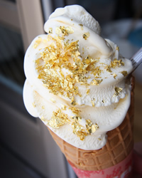 冬季はそれほど食指が動かないスイーツなのですが、夏は別です。一気に位が上がります。女子になります。 この烏骨鶏ソフトクリーム、加賀という土地柄なのか、なんと金箔がかけられています。 ひとつ700円とソフトクリームでは破格の値段ですが、これは納得の味です。 烏骨鶏をぜいたくに使ったクリームは少し黄色く、濃厚でベタついた感じがなく、ソフトクリームの概念を覆すようなほどよいひんやり感。東茶屋街の入口に位置する「金澤鳥鶏庵」で販売していますので、お立ち寄りの際はぜひ! 思いがけないところで出合ったご当地スイーツに思わずうっとり。 メレンゲのような濃厚さに、感嘆詞を連発してしまいました。 |