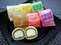 ![]() カスタードやカフェオレ、クリームチーズなど6種が味わえる「高坂るんば」は、なめらかなクリームを餅で包んだ斬新な大福です。関越道・高坂SA(上り線)で販売中。各210円(6個セット1200円)