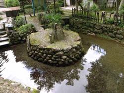 次の目的地は、建長元年(1249年)に、諸国を遍歴する常陸の国の僧が発見したという湧水だ。 環境庁が認定した日本名水百選にも数えられるこの「清水湧水」は、臨済宗の清水寺の敷地内にある。 駐車場から寺の正門に向かう前に、湧き水を利用した水浴びスペースがあった。素足の子どもたちがはしゃいで水をかけあっている。 湧き水は杉木立のなかにあり、あたりの気温がぐっと下がったように涼しくなった。 ペットボトルを何本も持って、地元の人が水を汲んでいた。水汲みの人は次から次へと何人もやってくる。 柄杓で水をすくって飲んでみると、ひやっとしたなかに、やわらかな、滋味深い口当たりのよさを感じた。 硬度を示すカルシウム、マグネシウム等を含む数値は36.2㎎/lと超軟水。味のある、うまい水だった。 |