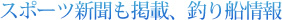 こうなれば、お魚大好きな私、初めての釣り船に挑戦するしかありません。ホームページをさらに眺めてみれば、子どもの写真なども掲載してあります。子どもでも大丈夫なら、ド素人の私だってなんとかなるはず。 こうして、釣り船搭乗計画を立てています。ま、隣が駐車場なぐらいだから、すぐに行けるのですけども……。 スポーツ新聞には「釣り情報」が掲載されることがあります。どんな魚が釣れるかもわかります。イカのときに行きたいなと思う私です。 |