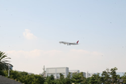 城南島海浜公園の目の前には羽田空港の着陸路があるので、飛行機が大きく高度を下げながら、公園の頭上を通過する