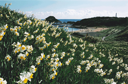 | 伊豆半島は、冬を忘れさせるほどの温暖な気候で観光客を迎えてくれる。 半島南端には入江一面を覆い尽くす水仙の花畑が広がっていた。 |