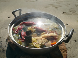 売店では、地元の料理「いけんだ煮みそ鍋」が名物だ。 「いけんだ」というのはこの地の名前で、早朝の漁を終えたこの地の漁師が、市場に出せない魚を煮込んで作った素朴な朝のごはん。 観光地とはいえ、適度な規模で手作り感があり、地元を愛する人々の温かな雰囲気がこの地に漂っている。 クルマに戻る頃には、身体も心も温まって、すっかり心地よくなっていた。 |