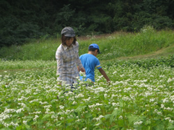 そば畑では肥料まきを行った。収穫できる日が待ち遠しい