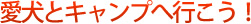 | いつものキャンプ仲間や家族だけでなく、愛するペットもキャンパーとして連れていきたい。最近では、ペットも利用できるキャンプ場が増えています。愛犬との楽しいひとときを自然の中で過ごしてみてはいかが? |