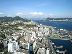 海峡ゆめタワーから関門海峡を望む。左が下関、海を渡った右側が九州・門司