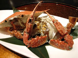 月待ち蟹は足を持って豪快に身にしゃぶりつく。熱湯に入れると足がもげやすいので生きているうちに足を束ねておくという
