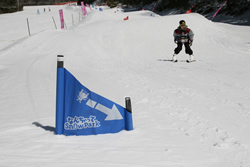 パンダルマンやスキー場独自のキャラクターが登場し、子どもたちを楽しませるようになった。 アイデアなのは「なんちゃってクロス」と呼ばれるアトラクションで、これは一般のスキーコースに設置してある。 きちんとコース設定されているので、他のスキーヤーやボーダーと衝突の危険がなく、大人も子どももコース上に作られたウエーブなどを楽しむのだ。 単なる一枚バーンを滑るのでなく、さまざまな変化のなかをスキーで遊ぼうというわけだ。さらに、大人リフト券を購入すると子どもは無料などのサービスを導入したスキー場も現れた。 |