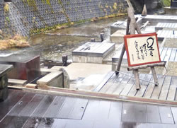 足湯「和楽足湯(わらしゆ)」は旅館と同じ源泉が引湯されている