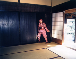 伊賀流忍者博物館 所在地:三重県伊賀市上野丸之内 TEL:0595-23-0311 開館時間:9:00~17:00(受付終了16:30) 休館日:年末年始 入館料:700円(小人400円/忍者ショーは別料金1人200円) 4月初めからゴールデンウィークにかけての土・日・祝日は、伊賀市内と中心部にある上野公園で「伊賀上野NINJAフェスタ2010」が行われる。 手裏剣打ち道場や吹き矢道場など、7つの忍者体験道場が開催されるほか、市中にはカラフルな忍者衣装を身につけた家族の参加者がたくさん集まり、町中が忍者一色となる。 大人も子どもも変身処で忍者衣装に着替えられるだけでなく、ペットにも衣装が用意されているので、楽しく忍者ごっこができる一大イベントなのだ。 忍者には伊賀だけでなく甲賀流もあるが、じつは両者の位置は地理的に近い場所にある。 岩尾山を境として北が甲賀(滋賀県甲賀市、湖南市)、南が伊賀(三重県甲賀市、名張市)に分かれている。 京都から東海道沿いに名古屋方面へ向かい、鈴鹿峠を越えると伊勢に至る街道へと続く。甲賀は鈴鹿峠へ向かう途中にあり、街道から入ったところにある飯道山は天台宗の修験道場として栄えていた。全国から多くの修験者によって情報がもたらされ、この一帯が軍事上の要衝地になっていたのは間違いない。 長享元年(1487年)、甲賀に活動拠点をもつ六角氏と第9代将軍足利義尚が戦った「鈎(まがり)の陣」では、山中に立て籠もった六角高頼が3年にわたってゲリラ戦を行い、結局、義尚は高頼を倒すことができずに病に倒れ、この世を去った。 このときの甲賀の兵法が、忍法へと発展していったと考えられている。 六角氏はのちに織田信長に制圧され、甲賀は信長の側につくが、伊賀はその後も反抗し続けた。