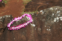 クカニロコの石の上にはフラワー・レイが飾られていました