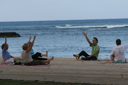 ワイキキビーチのヨガ教室。ワイキキのパワーを注入