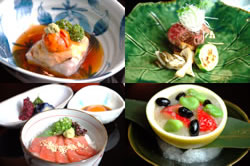 料理長は日本料理技能展全国大会優勝など数々のタイトルを受賞した田島淳志。 “ゴルフレストランの常識を覆す”ことを目的に、09年4月から3カ月間をかけて食材の調査を行い、同年8月に自社直営に切り替わりました。 料理長のこだわりは食材選びからはじまります。 鮮魚は地元千葉の大原漁港の網元と提携して直送されたものを使用。米は新潟・松之山の棚田でつくられる無農薬こしひかりを農家から直接仕入れています。また、茨城・大子町の濃度の濃い豆乳を使って自家製の湯葉を作り、100種以上の卵を試食したなかから、埼玉・東松山の幻の地卵で究極の卵かけごはんを提供するなど、食へのこだわりは群を抜いています。 通常の食事メニューはそのクオリティを維持したまま、満足できるリーズナブルな価格で食べることができます。 朝食の「おにぎり御膳」や「地鶏の卵かけ御飯膳」(ともに600円)も、そのこだわりに納得できる人気メニューになっています。