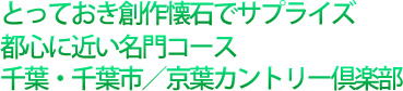 | 都心から約1時間のアクセスで行けるトーナメントコース。ビジターでもラウンド可能なこの名門ゴルフ場は、本格的な懐石料理が堪能でき、将来を見越して進化しつつ あります。 |