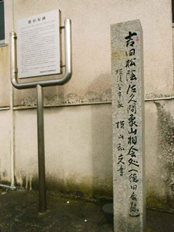 徳田屋跡には記念碑が残されている