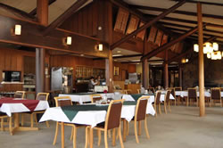 クラブハウスは木の梁が印象的な木造平屋風。寒い時期には暖炉に火が灯される