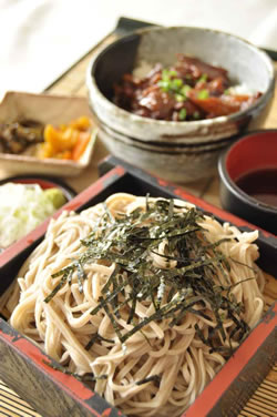 おすすめランチは栃木産仙波の蕎麦を使った手打ち蕎麦とミニ牛筋丼のセット(1680円)。