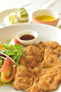 女性には岩手産鶏もも肉を香草焼きにしてスープ、コラーゲン、デザートとのセット(1260円)が人気 「当クラブの登録スタッフが、お客様と一緒にラウンドしてプレーの手順やマナー、基本的なルールを教え、サポートすることを考えました。もちろん、ティーチングプロではありませんので、レッスン料などは頂戴いたしません」(支配人代理 折田幸久氏) あさひヶ丘では、ビギナーをサポートする登録スタッフを「PA(プレーアテンダンド)」と呼んでいます。PAは同ゴルフ場に長く勤めていたOBの方々にボランティア的に手伝ってもらうことで成立しています。 「スタート前にPAとお客様との簡単な顔合わせのミーティングを行います。初めてコースデビューをする方やひとりで申し込んだ方など、その日の人数や技術レベルに合わせて2人か3人のメンバーに分け、1組につきひとりのPAが一緒にラウンドします」(折田氏) 知らない人と組むこともありますが、それもゴルフの楽しみのひとつ。 利用者は30代の女性が最も多く、気軽にラウンドできることからリピーターになる人も多いといいます。 当初、このサービスは週に1日程度、日程を限って行われていました。ところがあまりの好評のため、現在は平日であれば1日に3組9人程度まで受け付けています。 さらに、あさひヶ丘では、ファミリー、健康、アスリートをテーマにした、新たな企画サービスを進めています。 ファミリーを対象にした切り口では、子どもから目が離せない若い世代を対象にした託児所つきのプレーを開始。プレー日やスタート時間は枠が限定されていますが、ウェブから予約ができるようになっています。 また、夫婦で来場してもらい、夫のプレー中に妻が送迎バスでエステやアウトレットショッピングを楽しむという企画も進行中。