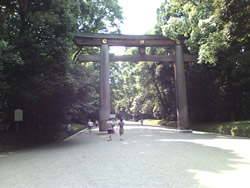 大鳥居をくぐって御本殿に向かう左側に御苑の北門があるのですが、参拝者の多くが御本殿に向かわずに北門から御苑に入っていくのです。 「あちゃちゃ、これはもうすごい人なのかな」 暑さにやられ、くらくらしながら北門を入っていったのでした。 |