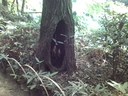 歩道の横の大木の洞からも新しい命が。森全体に生命力が漲っています