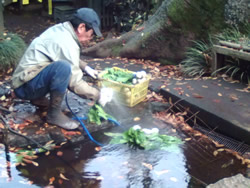 農家の方が湧水で、収獲したばかりのカブを洗い、それを屋台に並べて売っているのが印象的でした。 雑木林と湧水をそこに住む人たちは大事にしながらうまく利用している。汚れのないその湧水は、ホタルの棲息地でもあります。 |