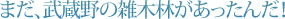 すぐそばには雑木林と泉があり、理科の先生に連れられて何度も見学に行ったものです。 どんぐりを拾い、湧き出る水に手をつけてみる。武蔵野の雑木林はとても身近な存在でした。 それからわずかな時間でその姿はどんどん減っていきました。雑木林は切り拓かれて住宅地に姿を変え、泉から流れていた小川はコンクリートで固められてフタをされてしまいました。 今では“深大寺周辺”や“井の頭公園”あるいは市町村によって整備された公園でしか雑木林を見ることはできなくなりました。と、そう思っていたのです。