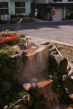 ![]() 宿の裏手にある源泉では大量の湯が湧出している