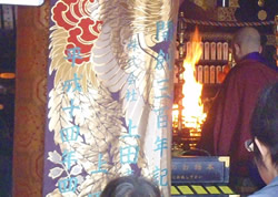 成田山深川不動堂では火を使った儀式が外からでも見られます