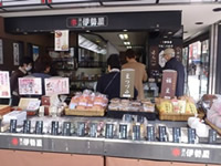 門前の「伊勢屋」は甘味のおみやげを購入する人たちでいっぱいです