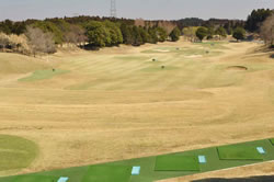 コースと見紛うばかりのドライビングレンジ。300ヤードまで打てる。アプローチや広大な円形のパッティンググリーンなど練習スペースも贅沢に確保してある