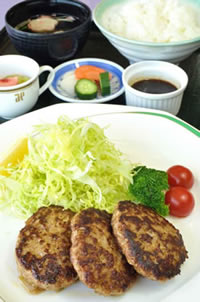 スパイシーな「特製ハンバーグ定食」(3枚1600円、4枚1800円)が人気。東金産ねぎを使ったボリューミーなあさり丼(1500円)も味が染みてうまい